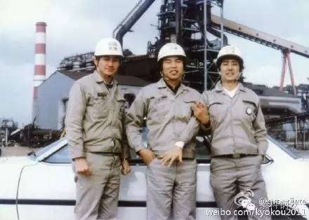 安倍晋三1979年4月进入神户制钢(右为安倍)